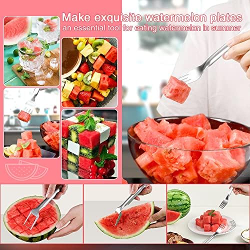 🍉【2-in-1 Watermelon Fork Slicer】:This amazing watermelon fruit cutting fork tool can cut watermelon into perfect cubes.With this watermelon slicer cutter, you don’t have to worry about spilling watermelon juices everywhere. The watermelon fork tool can be used as a fruit fork, which is a practical tool for eating watermelon in summer