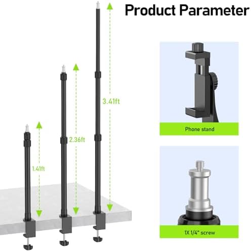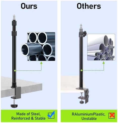 Adjustable Bracke:ALTSON desk camera mount has 3 extensions, the height can be adjusted from 17“ to 41” with the fixed knob, perfect for saving space. It can perfectly used for makeup, interviews, lighting, live streaming, video shooting, etc.v