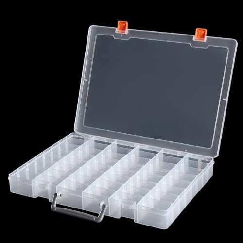 🧰🧰【Large Capacity & Removable Dividers】– Store every tiny stuff from jewelry to crafts to tackle tools while keeping them safe from pests and dust with Large Clear Storage Boxes. You will receive 2 pieces Large 48 Grids Clear Plastic Organizer Boxes with Adjustable Dividers. The 48 grids inside each box are alternable to meet various needs of collectors by adjusting dividers. The outer box measures 36.2 x 26.2 x 4.2 cm/14.25 x 10.31 x 1.65 inch.
