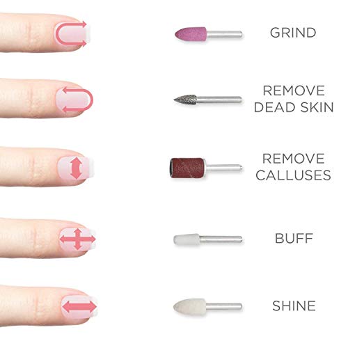 Carborundum grinder: remove the dead skin/calluses, and to push back the nail cuticle