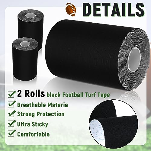 2 Roll Football Turf Tape Extra Wide Athletic Tape Waterproof Sport Tape Ultra Sticky Turf Tape for Arm Football Kinetic Tape for Athletic Sport Protects from Turf Burn (Black)