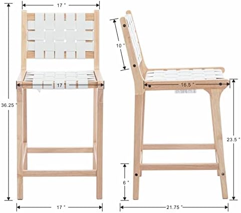 Be the first to review “23.5″ Counter Height Bar Stool Set of 4, Faux Leather Woven Strips Barstools Wood Straps Bar Chair with Back for Home Kitchen Island/Restaurant, White”