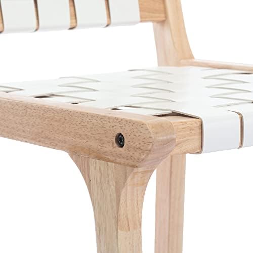 23.5″ Counter Height Bar Stool Set of 4, Faux Leather Woven Strips Barstools Wood Straps Bar Chair with Back for Home Kitchen Island/Restaurant, White