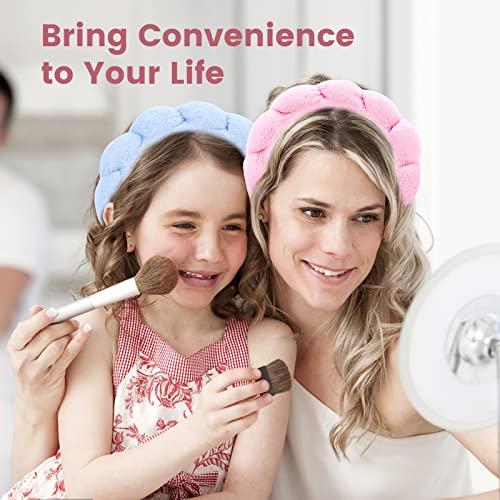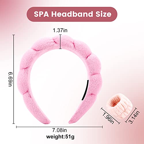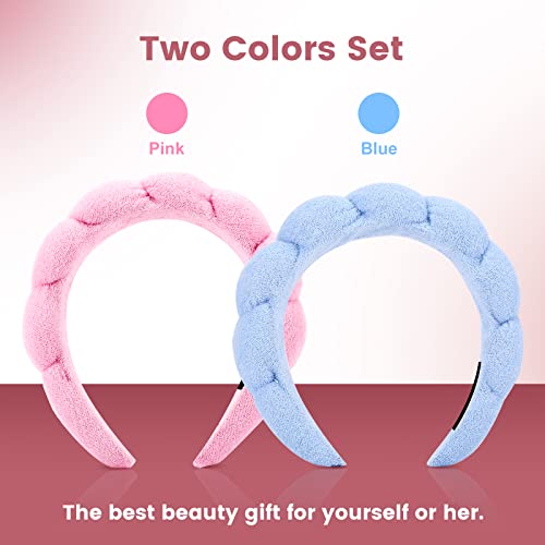 2Pack SPA Headband for Washing Face, Puffy Headband, Face Wash Headband and Wrist Washband Set, Soft and Comfortable, Makeup, Shower, Skin Care headbands for Women Girls(Pink & Blue)