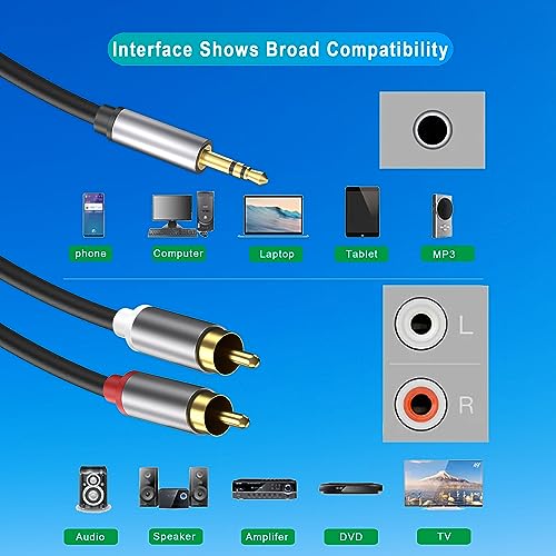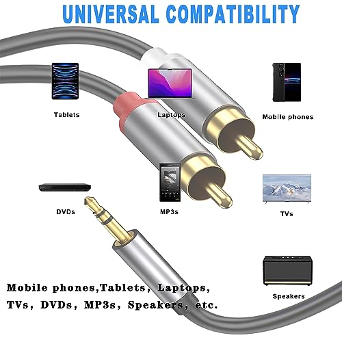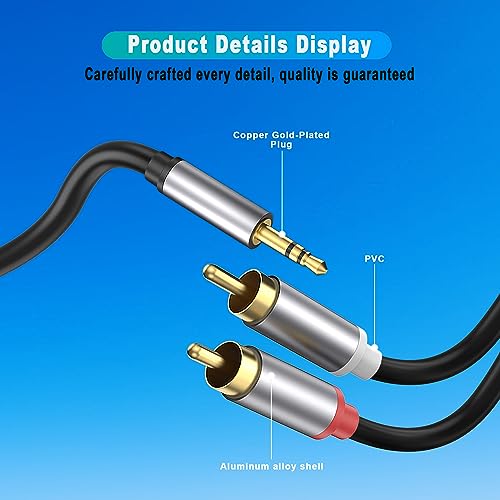 3.5mm to RCA Cable, RCA Male to Aux Audio Adapter HiFi Sound Headphone Jack Adapter Metal Shell RCA Y Splitter RCA Auxiliary Cord 1/8 to RCA Connector for Phone Speaker MP3 Tablet HDTV (10FT)