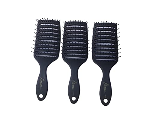 3 Pieces Professional Vented Detangling Hair Brush for Women by BeaverStrong (Black)