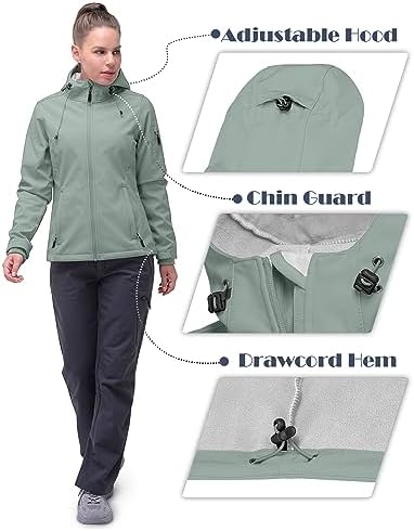 33,000ft Women’s Softshell Jacket, Fleece Lined Warm Jacket Light Hooded Windproof Coat for Outdoor Hiking