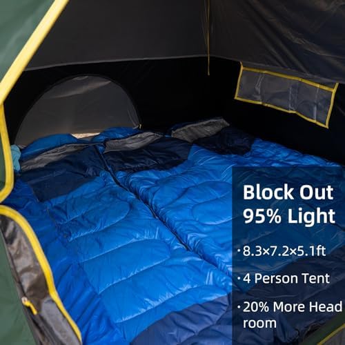 4 Person Blackout Camping Tent, Easy Setup Waterproof Family Dome Tent for Camping with Rainfly, Portable Double Layer Large Family Tent for Outdoor Camping&Hiking