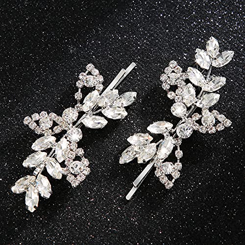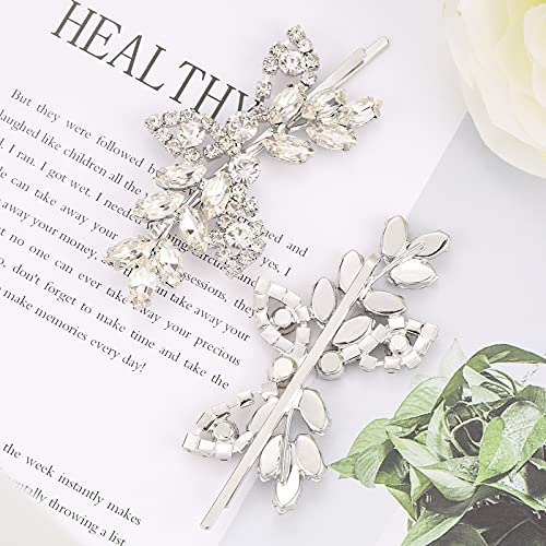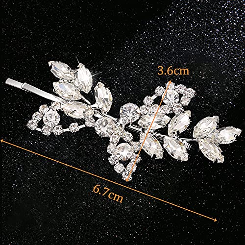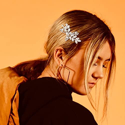 4 Pieces Rhinestone Bridal Hair Clip Leaf Wedding Hairpin Bride Pearl Crystal Hair Clips Rhinestone Barrette Elegant Bridal Hairpins Hair Accessories for Women Girls(Silver,Rhinestone Style)