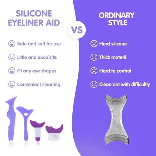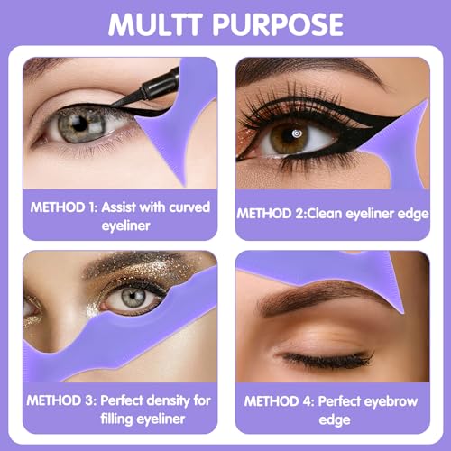 4Pcs Eyeliner Stencils Silicone Winged Eyeliner Tool Mascara Shield Guard, As Eyebrow/Eyelash/Contour/Lipstick/Eyeshadow Applicators Aid Tool, Makeup Tool for Beginners (Purple)