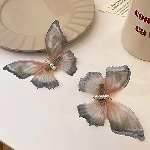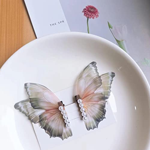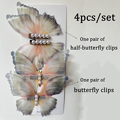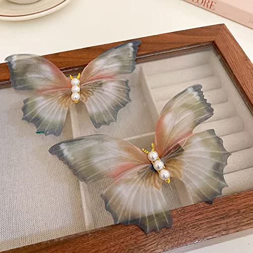 4Pcs Moving Butterfly Hair Clips Handmade Organza Wings Pearl Clips Claw Barrettes Fairy Hair Accessories Alligator for Women Girls