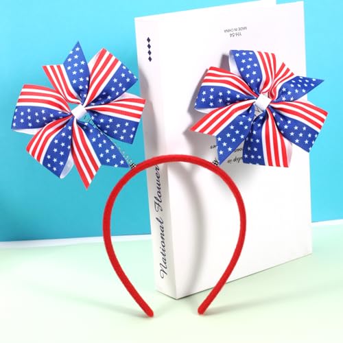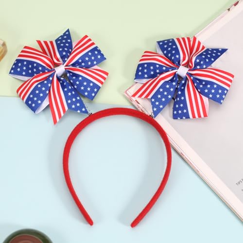 4th of July Headband Independence Day Hair Accessories Patriotic America USA Flag Red White and Blue Star Party Hair Decoration Cute Elastic Hair Hoop for Women Girls Kids