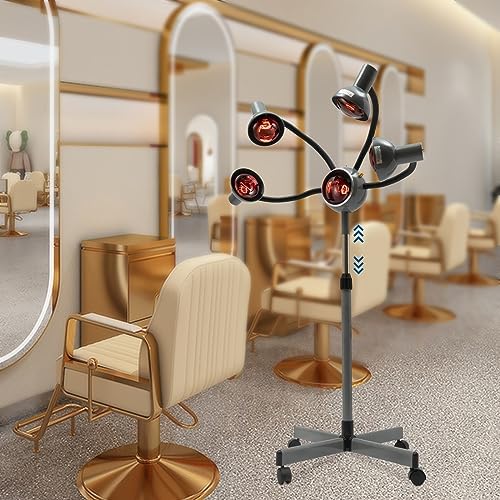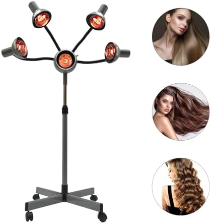 5 Heads Infrared Heat Lamp Red Light Hair Color Processing Machine Drying Adjusting Height Hair Dryer Stand Styling Perming Dryer Hair Salon Equipment