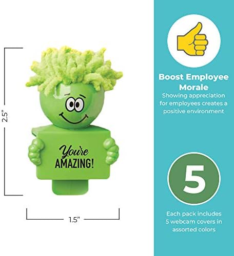 5 Pack Cheersville Web Cam Privacy Cover Mophead with Screen Cleaner, Desk Accessories, Laptop Camera Assorted Colors. Fits PC Laptop, MacBook, Cell Phone – Protect Your Privacy Appreciation Gifts