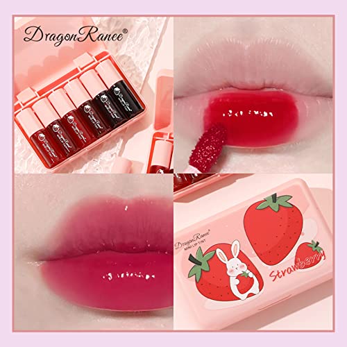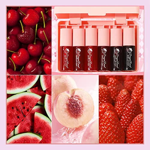 6 Colors Water Tint Lip Stain Set Plumping Mini Liquid Lipstick Moisturizing Lip Oil Tinted Lip Stain Long Lasting Non-Sticky Lip Plumping Set for Women Daily Lip Makeup