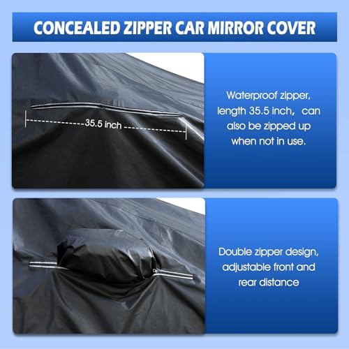 【Safety and Convenience Design】 ① The driver’s position of the full exterior covers has a zipper, which allows you to enter the car at any time to retrieve items without removing the cover. ② Equipped with six reflective stripes, the full-coverage reflective stripes remind others at night to ensure parking safety. ③ The cover is equipped with a mirror pocket to protect your mirrors perfectly and avoid damage. ④ It comes with a storage bag for easy placement.