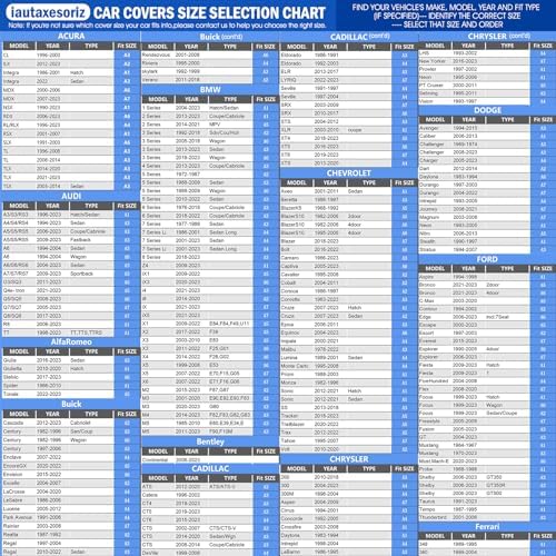 【All-Weather Protection】 Find your vehicle model and the fit cover size in the size chart (See the Size Chart in images 3 to 5). This car cover with soft cotton lining is custom design for for Sedan 187-198 inch. It provides comprehensive protection for the car from all-weather factors in the four seasons of spring, summer, autumn, and winter, such as dust, snow, hail, industrial pollution, bird droppings, leaves, pollen, acid rain, ultraviolet light, intense sunlight, heavy rain, etc.