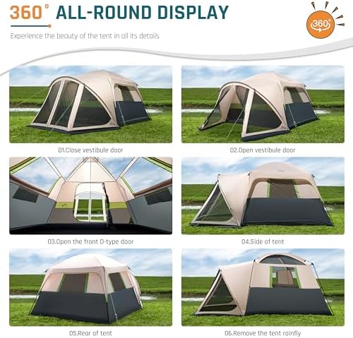 Extra Screened-in Porch & Excellent Ventilation: Relax in the cozy screened porch of our camping tent, where comfort meets functionality. The mesh door, 3 mesh windows, and 3 mesh top provide excellent ventilation, keeping you cool and bug-free during your camping adventures.