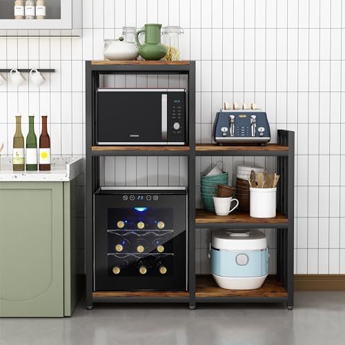 Ample storage space: With multiple shelves and compartments, this kitchen storage rack provides plenty of space to organize and store a variety of kitchen essentials such as POTS, pans, toasters, utensils, and even small appliances. Keep your kitchen clean and clutter free.