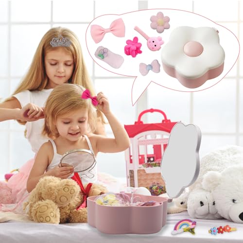 HAIR ACCESSORIES ORGANIZER with MIRROR: Effortlessly tidy up your girl’s hair accessories with our delightful flower organizer. Equipped with a built-in mirror, it offers convenient touch-ups whenever, wherever.