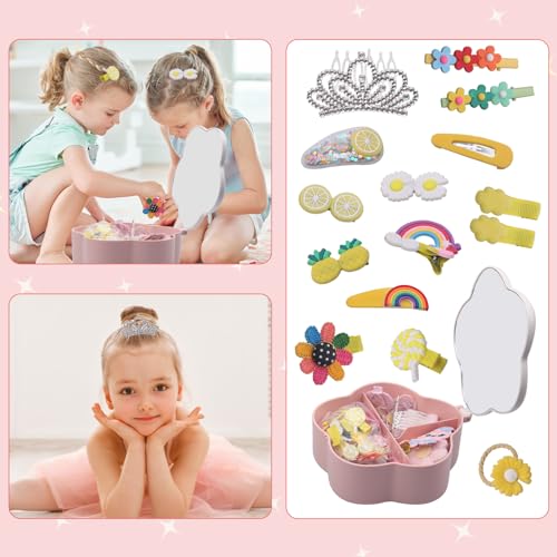 Girls Hair Accessories Set – 60 Cute Hair Clips for Girls with Hair Accessories Organizer with Mirror – Toddler Hair Clips,Bows for Little Girls 2-8 Year Old,Flower Hair Clip,Teen Girl Gifts for Birthday