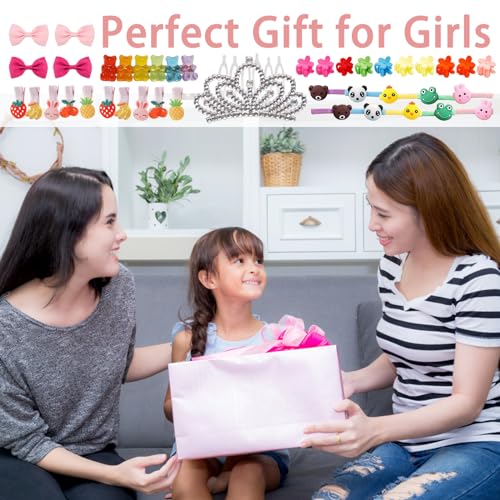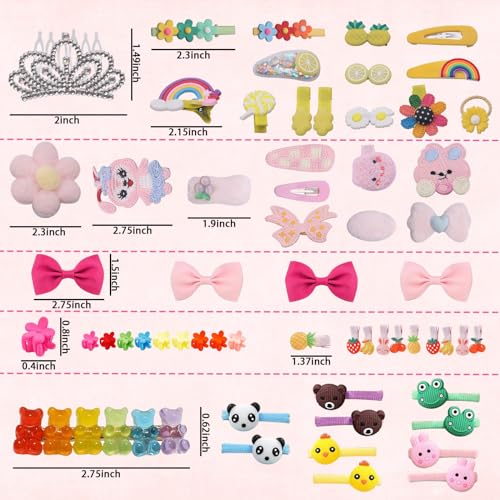 ULTIMATE HAIR ENSEMBLE: Unleash creativity with our meticulously curated collection of 61 pieces, featuring an array of baby hair clips, barrettes, crown, and various girl hair accessories. Perfect for crafting versatile hairstyles and exploring endless combinations, Suit for Little Girl 2 – 8 Year Old.