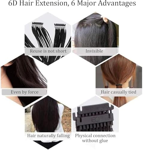 ▶【6D HAIR EXTENSIONS HUMAN HAIR】 Easy to operate No need to pull tools, pliers or pens! Just place the hair extension and apply it to the client’s hair. When the wig needs to be replaced, each tool is equipped with a removal clip, which can be changed at any time.