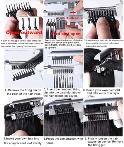 ▶【HAIR EXTENSION TOOLS UICK AND SIMPLE】 No glue, no need to connect the hair, you can connect the hair directly, saving time and electricity, and can extend the hair extension time, easy to comb and maintain. Up to 10 expansions can be performed at a time. It can reduce the time for sending and receiving from 2 to 3 hours to 20 minutes.