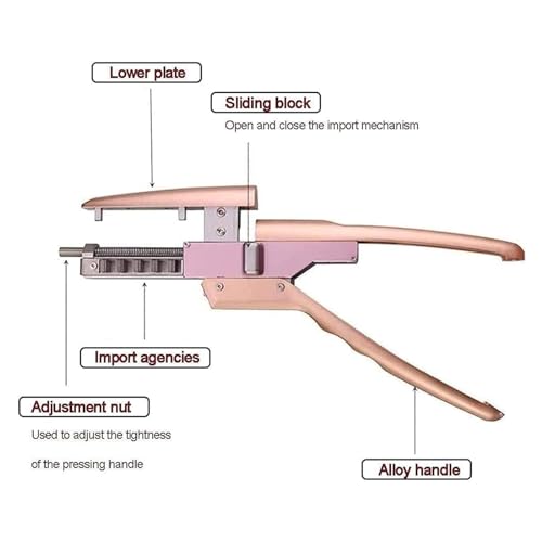 Specification: Material: Stainless steel Item type: 2nd 6d hair extension machine kit Size: 26.2*7.2*2CM Package Includes: 1Piece hair extensions connector, 1 pliers If you have any questions, please contact us in time, we will reply you within 24 hours. Note: This device is a 5-pin hair extension device, including 6d hair extension machine *1+pliers*1, please confirm this information before purchasing. How to use? 1. invert the firing pin on the hair end to expose the metal joint and leave the open outside. 2. press the receiver button with your hands, push back, and receive the slot to open. 3. inlay the metal head into the slot of the receiver, release the button of the receiver and clamp the hair. 4. take off the pin card of the back of hair bundle. 5. insert the shot pin on the card slot above the receiver. 6. combing smooth your hair and pick out a thin layer of hair. 7. embed the hair evenly into the grooves. 8. press the connector hard. 9. finally disconnect the receiver and pick off the pin card. 10. the 5 bundle of hair bundles will be connected.