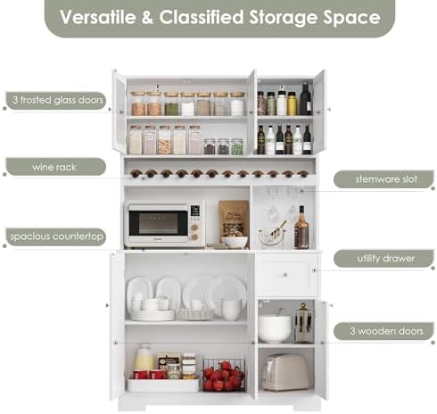 Pantry Storage Cabinet: Whether you’re a wine lover, coffee enthusiast, or just need extra storage, the kitchen storage cabinet is designed to meet your requirements. You can use it as a pantry cabinet, buffet hutch, bar cabinet, food pantry, coffee bar cabinet, liquor cabinet, china cabinet