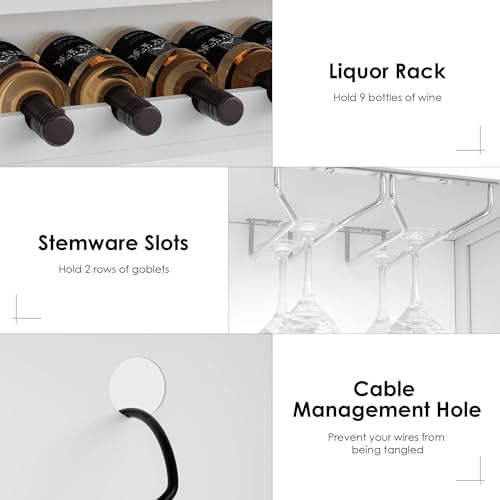 The large countertop can be used to store items, and the height is moderate and easy to access.Wine racks and wine glass racksThe 4 upper shelves are for small items such as mugs and condiments4 large cabinets in the lower part provide a lot of storage spaceDrawer for cutlery