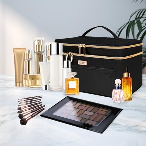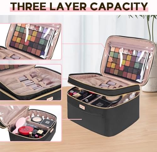 8.8L Double Layer Travel Makeup Bag Women, Large Cosmetic Case, Organizer for Travel-Size Accessories Bottles, Brushes, and Skin Care Products, Black 2.33 GAL