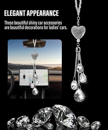 9.8 Inch Bling Heart Diamond Car Accessories,Crystal Car Rear View Mirror Charms Car Decoration Decor,Car Interior Hanging Pendant Charm Ornament Pendant,Bling Car Accessories for Women