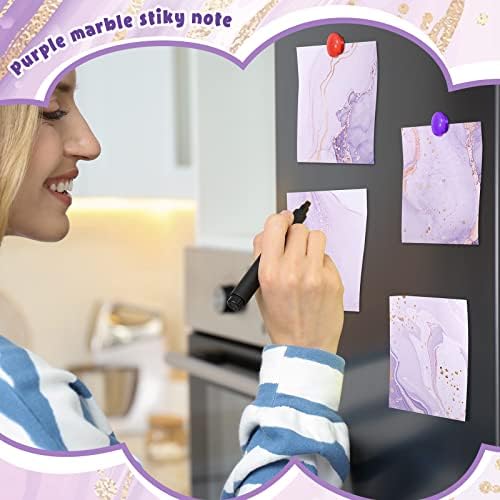 9 Pads Marble Purple Sticky Note Pads Marble Self Stick Note Reminder List 3 x 3 Inch Adhesive Memo Pads Purple Marble Office School Supplies, 9 Designs