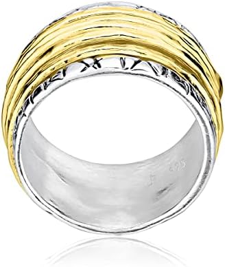 925 Sterling Silver/14K Gold Over Silver Rotating Spinner Ring Wrapped With Silver Black/Silver Gold/Silver Rustic/Silver Gold Lace/Floral/Lace Spinner Ring, Hypoallergenic, Nickel and Lead-free