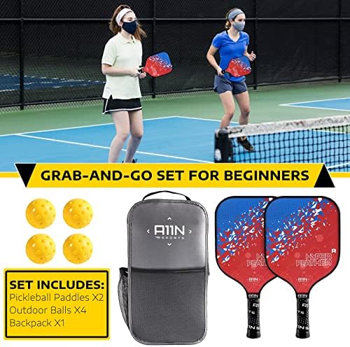A11N HyperFeather R Pickleball Paddles Set of 2 Rackets with 4 Outdoor Balls and 1 Backpack, USA Pickleball Approved