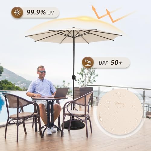 Abba Patio 9FT Lyon Outdoor Patio Umbrella Outdoor Table Umbrella with Push Button Tilt and Crank Market Umbrella 8 Sturdy Ribs UV Protection Waterproof for Garden Deck Backyard Pooll Beige