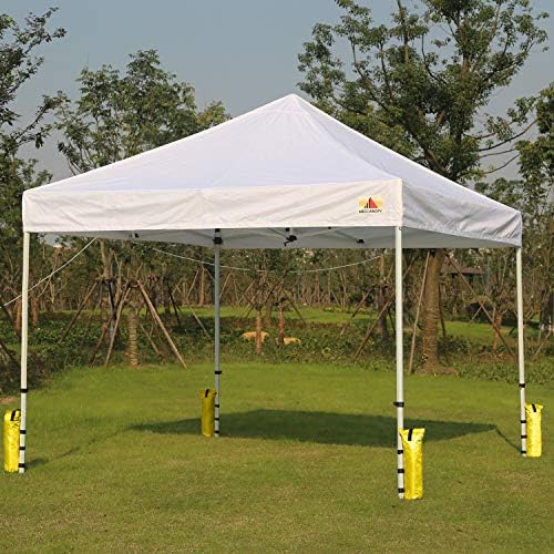 QUICK AND EASY SIMPLY FILL: Quick and Easy simply fill the anchors with sand into the large top opening and then simply attach the “hook and loop” straps to the canopy legs.