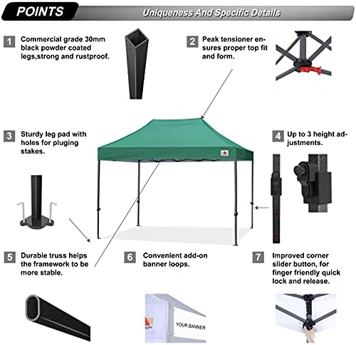 ABCCANOPY Heavy Duty Easy Pop up Canopy Tent with Sidewalls 10×15, Forest Green