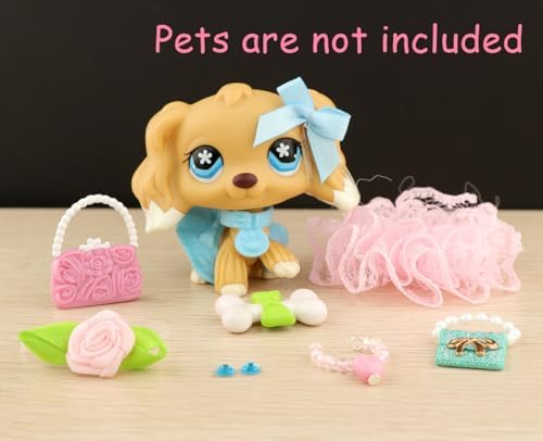 Accessories for lps Figures Lot (Random 35PCS) Clothes Bow Skirts Laptop Glasses Collars Food Drink Wings Earring Outfit for LPS Cat Collie Great Dane Cocker Spaniel Husky Dog, Pink, GHY65