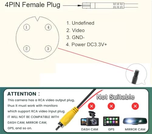 NOTE: All of our 4pin backup cameras can’t be connected directly with any other monitors(no matter DVR or dashcam or whatever) which is not compatible with RCA video input.