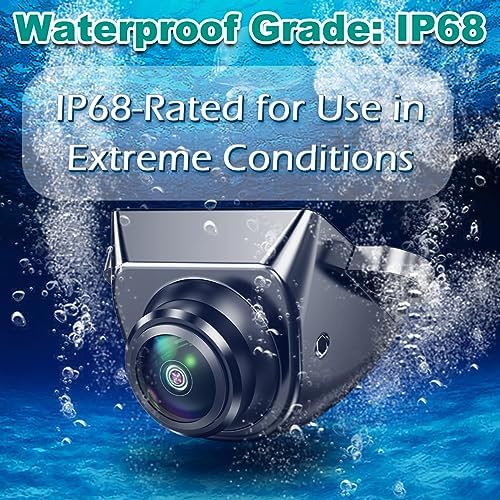 AHD 1080P Car Backup Camera—1920×1080 pixels resolution rear view camera with AHD video signal which provides more stable video signal transmission, less interference and delay than CVBS video signal cameras. High definition which is better than 99% reverse cameras, 170 degrees viewing angle, no worry about blind spot area, IP68 waterproof, works properly under car washing or bad weather, fantastic night vision effect, 0.01 Lux starlight night vision ensures high clarity image at any time.