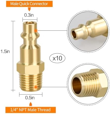 【10pcs Male Plugs】- Package includes 10pcs 1/4″ MNPT plugs, one end is male quick connector and the other end is 1/4″ NPT male thread.