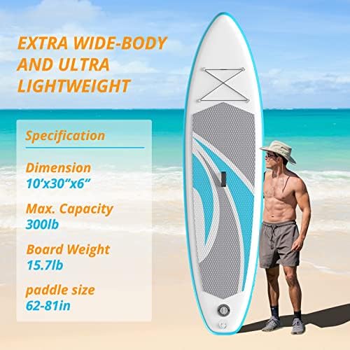 Lightweight & Easy to Carry: iSUP is made of military-grade double PVC with a drop-stitch core, providing enough cushioning for a weight limit of up to 300 lbs. At only 15.7 lbs, it is 25% lighter than other boards, making it easy for anyone to carry.
