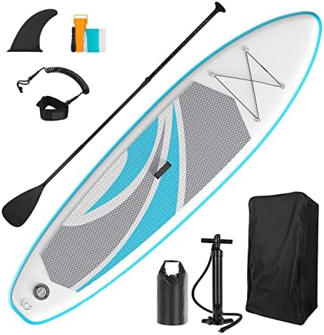 AKASO Inflatable Stand-Up Paddleboard, Yoga SUP with Backpack, Non-Slip Deck, Waterproof Bag, Leash, Floating Paddle and Hand Pump