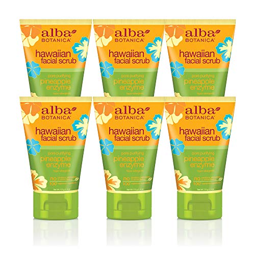 Alba Botanica Pore Purifying Pineapple Enzyme Hawaiian Facial Scrub, 4 oz. (Pack of 6)