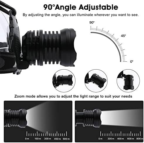 AMAKER LED Rechargeable Headlamp, 900000 High Lumens Super Bright with 6 Modes & IPX7 Level Waterproof USB Rechargeable Zoom Headlamp, 90° Adjustable for Outdoor Camping,Running,Cycling,Climbing