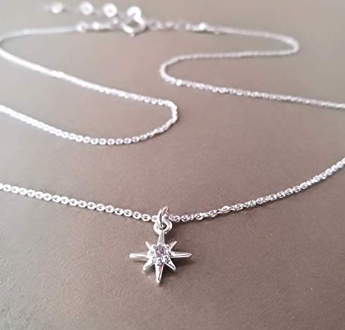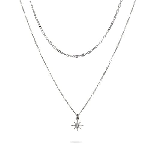 Annika Bella Sterling Silver Star Necklace for Women, Length 15-17 Inches, Tiny Cubic Zirconia North-Star Charm Pendant Necklace, Waterproof, Celestial Jewelry Gift for Her (Necklace Set of 2)