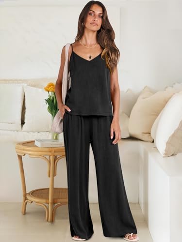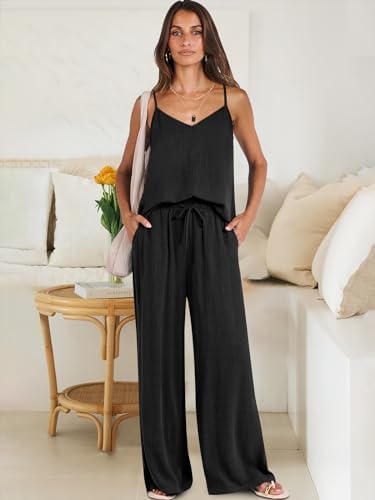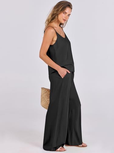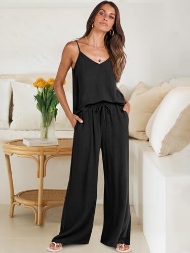 ANRABESS Women’s 2 Piece Linen Lounge Set Casual Matching Pants Jumpsuit Summer Beach Travel Vacation Trendy Outfits