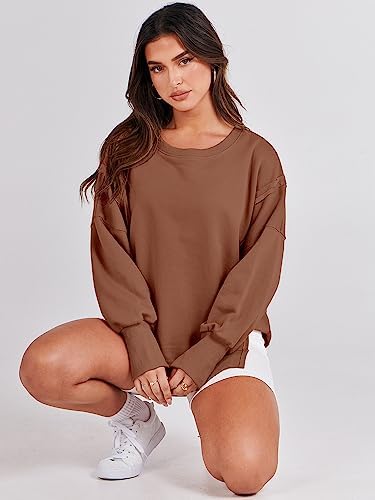 ANRABESS Women’s Oversized Sweatshirt Crew Neck Long Sleeve Casual Slit Pullover Top Fall 2024 Teen Girl Preppy Clothes